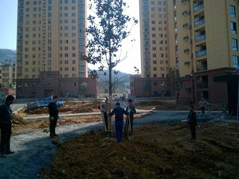 二、聯盟新苑景觀及綠化施工正在加班加點栽植施工進行中。